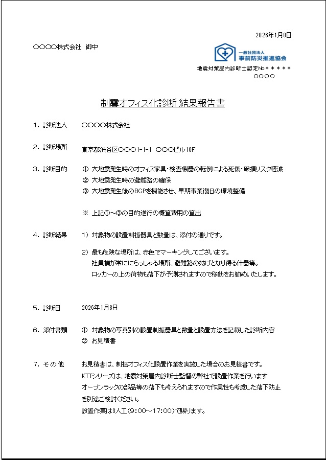 【制震オフィス化診断報告書】 |