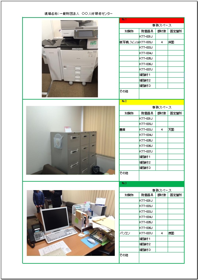 写真付きレポートでリスクを三段階評価 【制震オフィス化診断報告書】 |
