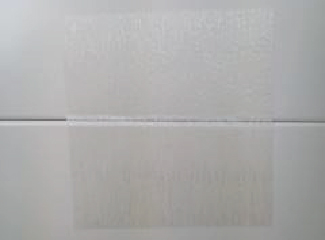 取り付けは簡単。 剥離紙をはがし、連結部分に対して左の写真のように、 ガラス繊維が垂直になるように貼り付けて下さい。 上下分離タイプの対象物については、左右の側面2カ所に それぞれ2枚ずつ、計4枚(1セット)使用してください。