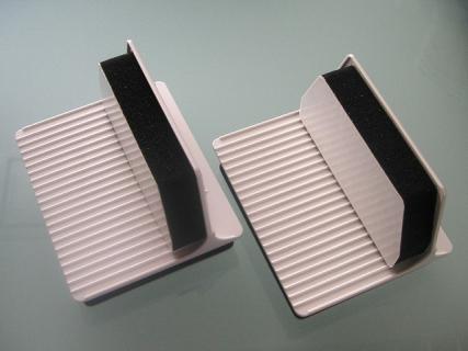 ② 長期間の取付けなどにより、布粘着剤が家具や壁に強く張り付いてしまった場合には、無理に剥がそうとせず、市販のテープはがし剤を使って少しずつはがすか、カッターなどで超発泡ダンパーを切ったうえテープはがし剤を使用し、壁を破損させないようはがしてください。