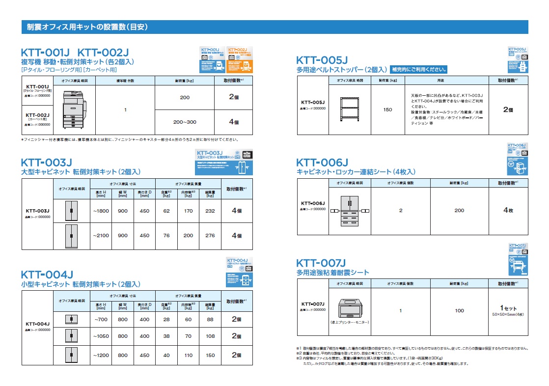 対象物と重量によってどの製品を何個取り付ければ良いか分かりやすくまとめています。