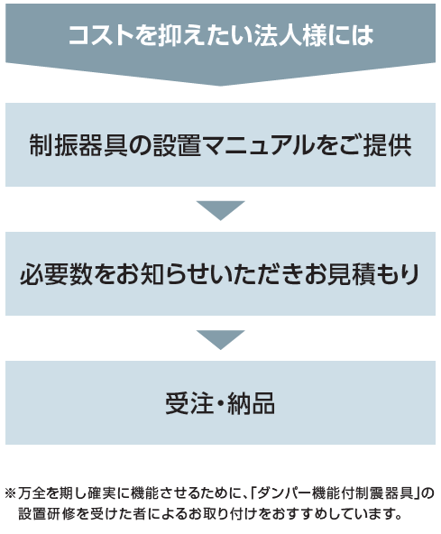 万全を期し確実に機能させるために、「ダンパー機能付制震器具」の設置研修を受けた者によるお取り付けをおすすめしています。